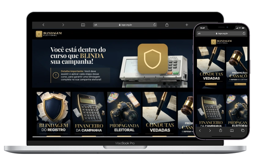 O Blindagem Eleitoral é o único curso estruturado no calendário eleitoral de 2026 propaganda, dinheiro de campanha, registro e prestação de contas explicados por doutores em direito eleitoral, direto ao ponto.